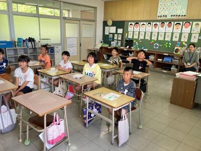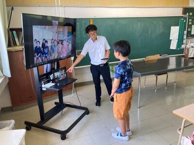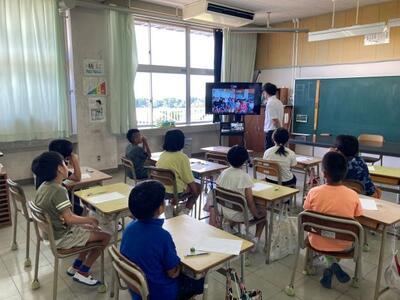 9月2日(火)、4年生と美々津小学校の3・4年生で、オンラインでの交流学習会を実施しました。9日(火)には、合同で石並川の水質調査を実施するので、その前にオンラインで自己紹介をしました。自分の名前と好きなものを3つ紹介し、それに対して質問するなど、楽しい雰囲気の中で実施しました。この交流学習会をきっかけに、水質調査では、両校の児童がさらに親密になることでしょう。