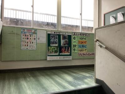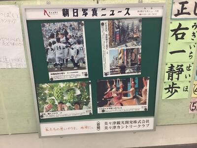 校舎中央の階段の踊り場に、朝日新聞写真ニュースを4枚掲示できる掲示板を設置しました。この写真ニュース及び掲示板は、地元企業である「美々津観光開発株式会社 美々津カントリークラブ」様から寄贈していただきました。