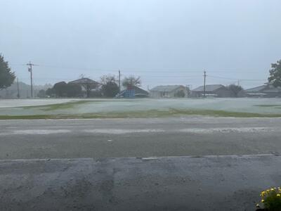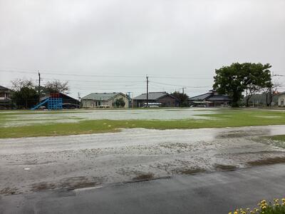 〇午後4時の運動場。雨も風も激しくなってきました。