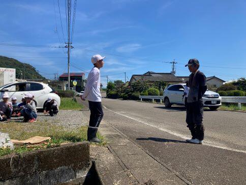 「皆さんが稲刈りした田んぼは、イノシシがよく出ます。そのため、イノシシが近づかないように電柵で囲みました。また、電柵に雑草がかからないように、こまめに草刈りをしました。」