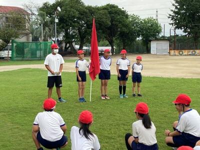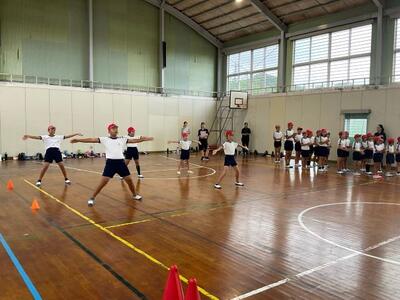 結団式の後は、開会式の練習をしました。1つ1つの動作を確認しながら行いました。いよいよ本格的な練習が始まります。まだまだ暑い日が続きますので、熱中症に十分気を付けながら取り組んでいきます。