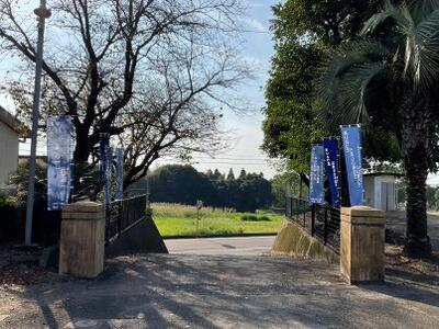 こののぼり旗を見ながら、美々津中学校区の児童生徒が、心のこもったあいさつをさらに積極的に交わすようになることを願っています。