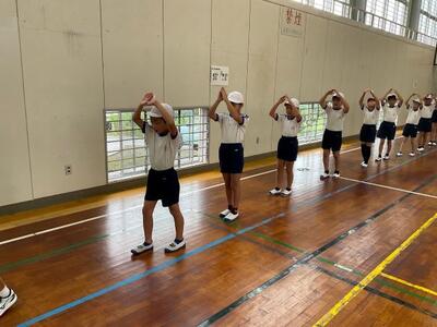 9月24日(水)、第3回運動会全体練習がありました。この日は、朝から雨が降っていたので、体育館で実施しました。