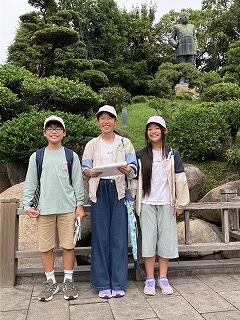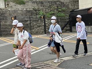 自主研修がスタートしました。鹿児島中央駅から市電に乗って、班のみんなで話し合って決めた見学地を巡ります。途中、先生が待つ西郷隆盛像などのチェックポイントも通らねばなりません。地図を見ながら自分たちで巡りますので遠回りやハプニングもしばしばです。