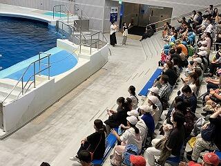 いろいろな海の生物や幻想的な空間に子どもたちも興味津々といった感じです。水族館の最後は、名物「いるかの時間」のショータイムです。