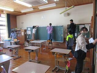 24日(水)に大掃除をしました。ずっと楽しく過ごした田代小学校ともあと数日でお別れです。最後に使った教室を感謝の気持ちで掃除しました。自分達で掃除するところを見付けて時間いっぱいがんばりました。さすが田代小の子ども達です。
