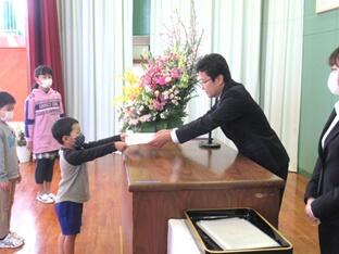 26日(木)に令和2年度の修了式を行いました。校長先生から学年の代表に修了証が手渡され、一人一人のがんばりについて1年間を振り返りながらお話がありました。最後には1年生の代表が1年間でできるようになったことを発表しました。