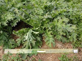 生長の勢いは止まりません。畑いっぱいに大きな葉が目立つようになりました。そして、いらかぶ特有の葉の輪郭(紫色)になってきました。
