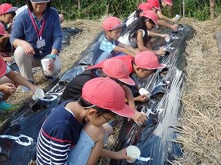 いらかぶの種をまきました。いらかぶの種は、大きさ・形・色が大根の種によく似ていました。子どもたちも、元気に丈夫に育つようにと願いをこめて、種をまいていました。