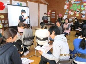 その後は保護者対象に講師に今村光代さんを招いて「メディアから子どもを守るために」と題して話をしてもらいました。メディアに頼らず、子どもの話をきちんと聞いて、しっかり伝えるコミュニケーションの大切さを再確認できたと思います。実践などもあり、勉強になった時間でした。