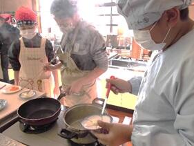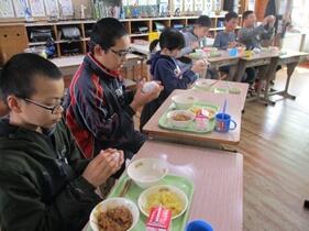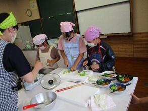 17日(金)に5年生が「ごはんとみそ汁」の調理実習を行いました。みそ汁の具材から自分たちで考え、協力しながら実習を行いました。火加減や包丁を使うときの安全にも気を付けていました。味付けも納得だったようで、「おいしい!」の声があちこちから聞こえてきました。