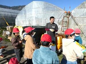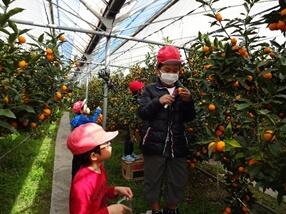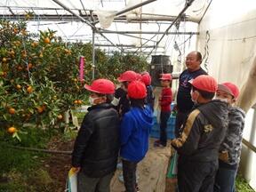 3年生が美郷科で「キンカン」農家の山澤さんのハウスに見学に行きました。「キンカン」は美郷の名産です。子ども達もよく目にし、食しています。山澤さんからうれしいことや大変なことなどの話を聞いて、実際に収穫もさせてもらいました。気付き、発見も多い見学でした。「おいしいと言ってもらうことが一番嬉しい。」農家さんの思いに触れることができました。