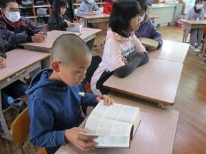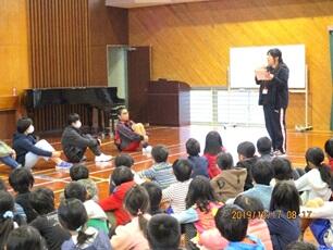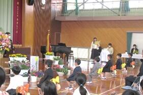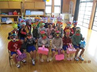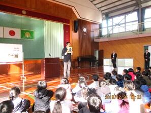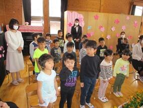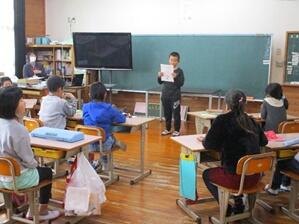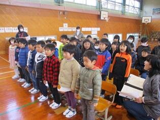 21日(火)に発表集会あり、寒い朝でしたが1年生のかわいい発表に元気をもらいました。鍵盤ハーモニカでの「キラキラ星」は音もきれいにそろっていました。「大きなかぶ」は歌と踊りで表現力豊かに発表できました。1年間の成長を感じられた発表でした。