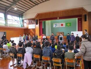 始業式では校長先生からディズニーランドの掃除の秘密の話がありました。これからも、みんなで田代小をきれいにしていけるといいですね。その後、2年生の代表が今年の抱負を力強く発表し、気持ち良く3学期のスタートが切れました。その後、市町村対抗駅伝大会出場者に全校で応援の拍手を送りました。ラスト55日(6年生は54日)です。1日1日を大切に過ごしていきましょう。