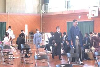 新任式で新しい先生の紹介の後、始業式では校長先生から「命」を守る行動についての話があり新しい先生の発表もありました。式後は新しい教室で新しい教科書をもらったり、友達と談笑したり、気持ちよく令和2年度がスタートしました。