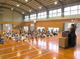保健室から休み中の過ごし方について再度確認があった後、今年度田代幼稚園、田代小学校を離任される先生の紹介もありました。先生方、長い間ありがとうございました。先生方のご活躍を田代の地から願っています。