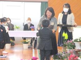 本日、26日(木)に本年度の修了式を行いました。年少さんから5年生まで代表児童に校長先生から修了証が手渡されました。校長先生から久しぶりにみんなに会えて嬉しいとのメッセージの後、1年間を振り返って子どもたちのがんばりの話がありました。
