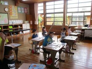 5月25日(月)に学校が再開となりました。朝は全校朝会があり、校長先生から「元気」「感謝」「夢」についての話がありました。その後は、保健室の先生から、これからも手洗い・うがい、マスクの着用の他、生活リズムを戻していくことの話もありました。特別支援の話もありましたが子どもたちは真剣に話を聞いていました。