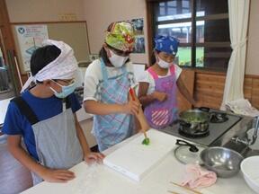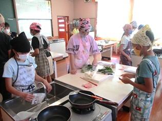 その後、家庭科室で漬物作りまで行いました。一生懸命もんで、楽しく取り組んでいました。家でおいしくいただいて下さいね。
