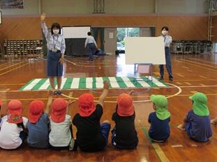 22日(水)に3年生が社会科で学習している「地域の安全を守るもの」を探しに校外学習に出かけました。駐在所や消防小屋の他、消火栓やカーブミラーなど、自分たちは多くのものに守られて安全に生活できていることに気付けました。役場では消防車や救急車も見せてもらい、大変勉強になりました。