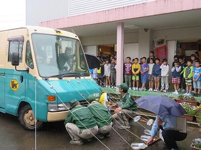 4月17日(月)に幼小合同交通安全教室が行われました。今回は、ヤマト運輸株式会社の方々のご協力を得て、横断歩道の渡り方や車の死角、内輪差などについて丁寧に教えていただきました。