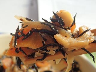 今日のズームアップはひじきの五目煮です。一見すると、ひじきと大豆しか目立ち