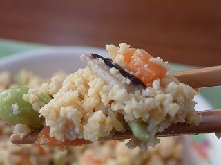 今日のズームアップは「彩りどんぶり」です。「いろどり」という献立名だけあって、にんじん、しいたけ、豆・・・本当にカラフルです。彩りだけでなく、味もよかったです。