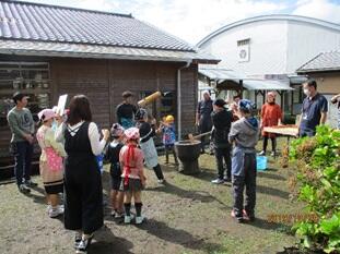 9月30日(月)に学校田の稲刈りを行いました。今回も峰区農用地管理組合の方、PTAの方の協力で手際よく進められました。2回目の6年生が5年生にアドバイスする場面も見られ、充実した時間になりました。長雨の影響か、量的には昨年度より少なく感じましたが、10月のもちつき大会が楽しみです。もち米販売も町民祭で行いますので、ご協力お願いします。