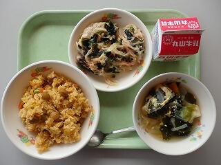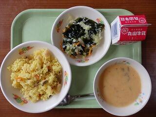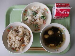 ダと、秋一色の献立でした。特に、炊き込みご飯は、ごはんに味がしっかりつ