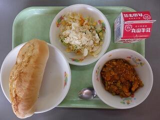 せんでしたが、今日のメニューはミートソースで煮た洋風メニューでした。マ