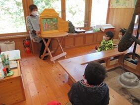 13日(金)に町の幼稚園訪問が行われました。県や町内から10名をこえる先生方に年中・年長の保育活動の様子を見てもらいました。園児の様子の他、先生方の指導の仕方も見てもらい、事後の協議会でも、いろいろなアドバイスを受けました。よりよい教育を目指して、学んだことを活かします。