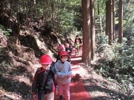 12日(木)に1年生が「おせりの滝」を見に行きました。子供たちは事前に民話でおせりの滝について学んでいて「龍が見たい。」「黄金のみかんが・・・」と行く前から興奮していました。始め民話伝承館で黒田さんに紙芝居をしてもらい、みんなでおせりの滝を見に行きました。すごくいい天気で、民話を思い出しながら楽しく見学できました。