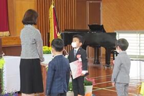 本日、26日(木)に本年度の修了式を行いました。年少さんから5年生まで代表児童に校長先生から修了証が手渡されました。校長先生から久しぶりにみんなに会えて嬉しいとのメッセージの後、1年間を振り返って子どもたちのがんばりの話がありました。