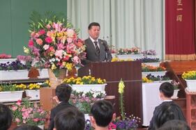 新任式で新しい先生の紹介の後、始業式では校長先生から「命」を守る行動についての話があり新しい先生の発表もありました。式後は新しい教室で新しい教科書をもらったり、友達と談笑したり、気持ちよく令和2年度がスタートしました。