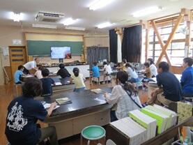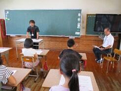 田代小では西郷中との小中一貫教育の取組の一つとして中学校の先生に授業をしてもらう「授業交流」を行っています。前回は体育科の郡司剛典教諭に水泳指導をしていただきましたが、18日(木)は国語科の長野真理子教諭から5・6年生に「読書感想文の書き方」の指導をしていただきました。テンポの良い専門的な授業に子どもたちは引き込まれ、大事なポイントを分かりやすく学んでいました。