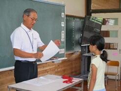 田代小の4年生は総合的な学習の時間で「福祉教育」を行います。12日(金)は社会福祉協議会の藤本さんと民生委員の黒木さんを講師に招いて、地域でできる福祉活動についての話をしてもらった後、一人一人に委嘱状と子ども民生委員の名札、名刺をいただきました。子どもたちも神妙な表情で委嘱状を受け取り、今後の実践に向け目を輝かせていました。