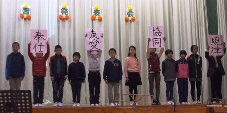 1年生から6年生までの全学級の発表が行われました。また、5・6年生による若宮神楽や葉桜朗詠も披露しました。
