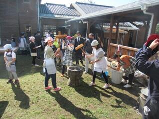 10日(火)にもちつき会を開きました。5・6年生のが田植えから稲刈りまで行ってくれたもち米を使ってのもちつちき会です。保護者へ協力を依頼したところ、非常に多くの方に集まっていただき大変助かりました。子供たちも笑顔いっぱいでおいしいもちをつきあげました。
