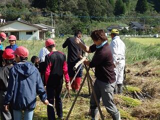 のご協力いただき稲刈り体験をしました。初めて体験する5年生は、最初ぎこちない様子で稲を刈っていましたが、後半では鎌使いも上手になりました。6年生は、昨年も体験しているだけあって、最初から慣れた手つきで稲を刈っていました。