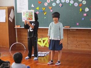 21日(火)に発表集会あり、寒い朝でしたが1年生のかわいい発表に元気をもらいました。鍵盤ハーモニカでの「キラキラ星」は音もきれいにそろっていました。「大きなかぶ」は歌と踊りで表現力豊かに発表できました。1年間の成長を感じられた発表でした。