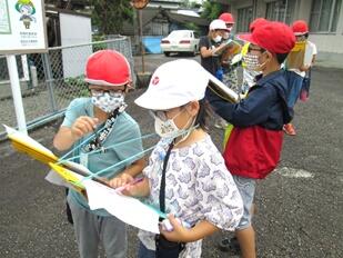 22日(水)に3年生が社会科で学習している「地域の安全を守るもの」を探しに校外学習に出かけました。駐在所や消防小屋の他、消火栓やカーブミラーなど、自分たちは多くのものに守られて安全に生活できていることに気付けました。役場では消防車や救急車も見せてもらい、大変勉強になりました。