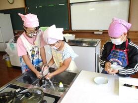 17日(金)に5年生が「ごはんとみそ汁」の調理実習を行いました。みそ汁の具材から自分たちで考え、協力しながら実習を行いました。火加減や包丁を使うときの安全にも気を付けていました。味付けも納得だったようで、「おいしい!」の声があちこちから聞こえてきました。