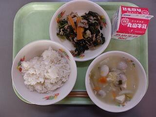 昨日、3・4年生が収穫した「いらかぶ」を使った野菜炒めが、今日の給食に