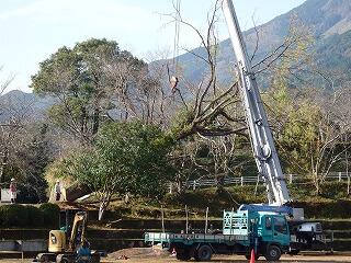 【大型のクレーンで吊り下げた状態での伐採となりました。】