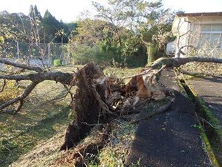 学校横の西郷図書館にある桜の木は、左右に引き裂かれるように折れ、倒れていました。