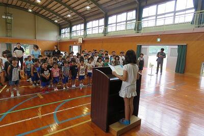 今日は、1学期の終業式がありました。終業式では5年生の代表児童の人が、1学期の振り返りを作文に書いて発表してくれました。聞いていた他の児童の皆さんも、きっとそれぞれの思いをもって終業式を迎えたことと思います。命に関わるような大きな病気やけがもなく1学期を終えることを喜びたいと思います。明日からは長い夏休みになります。思い出に残る充実した休みになることを願っています。
