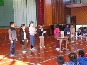 3日(火)は全校朝会でした。校長先生から人権週間に向けて学校で取り組んでいる「ふわふわ風船」から友だちのよさを認める大切さの話がありました。また、今週で産休に入られる先生のお話の時は涙ぐむ子も見られました。みんなで先生を応援したいと思います。最後は元気な体について必要な「睡眠」「運動」「栄養」もみんなで確認しました。
