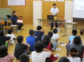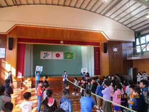 10月8日(火)に5年生の発表集会がありました。今回は夏休みに町内の5年生で行った沖縄の報告と5年生から学んでいる家庭科で学習内容の発表でした。プレゼンを使ったり、クイズ形式を用いたりして全員が分かりやすいようにするなど、発表内容も方法も高学年らしい発表でした。