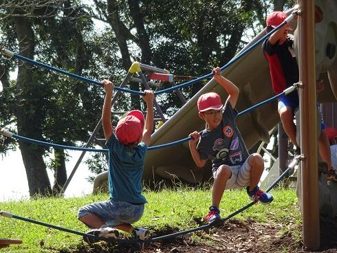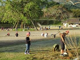 午後は、日向サンパークに行き、遊具で遊びました。一緒に来ていた塩見小の人たちとも仲よく遊び交流できました。
