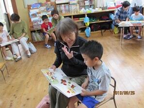 読み聞かせボランティアの黒木輝子さんの話の後は絵本を通して交流の時間でした。会話しながらの読み聞かせは大変素敵な時間になりました。